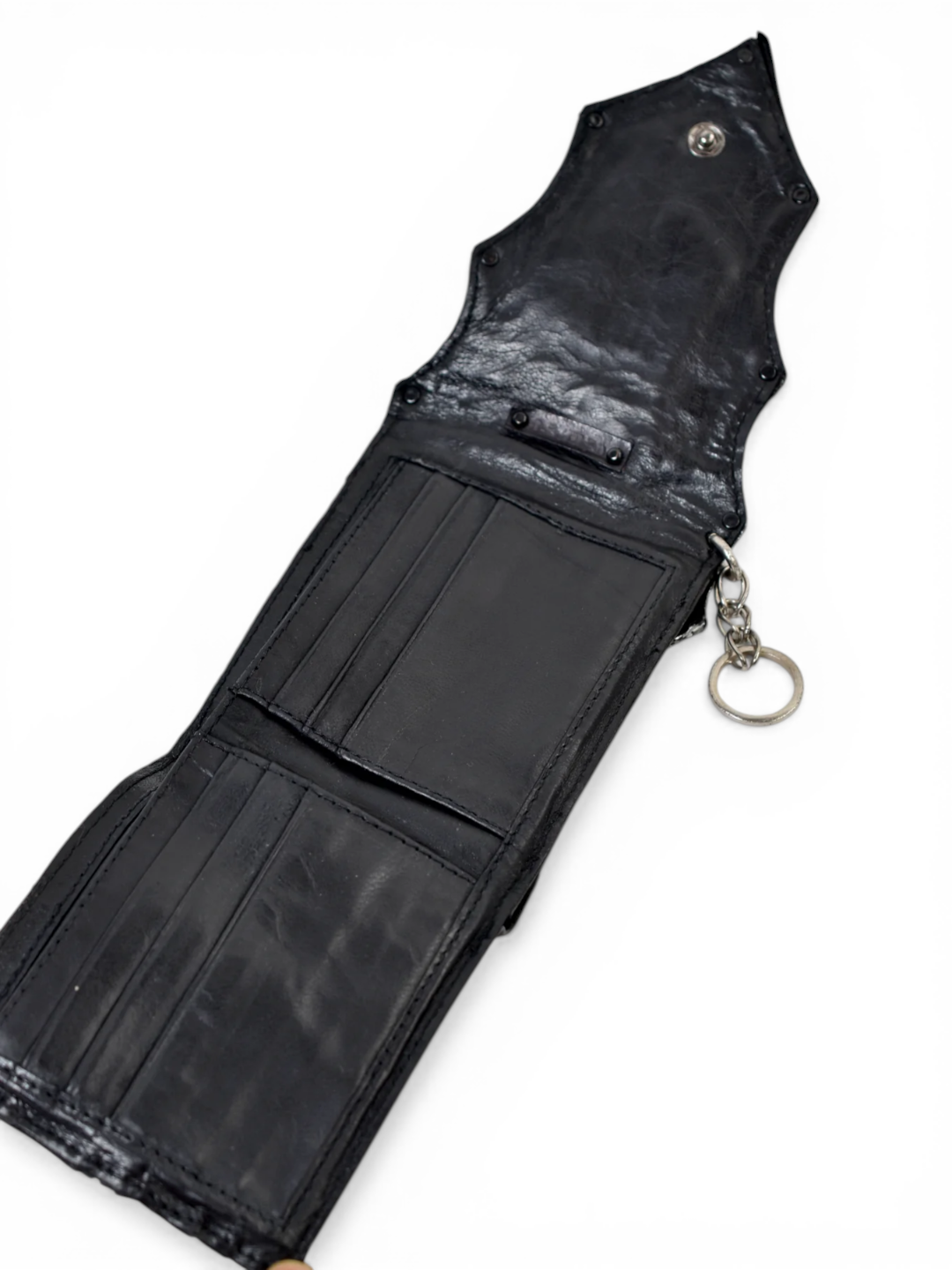 - カードスロット8つ 、紙幣用スリットポケット2つ、スナップボタン付き小銭入れ1つ。