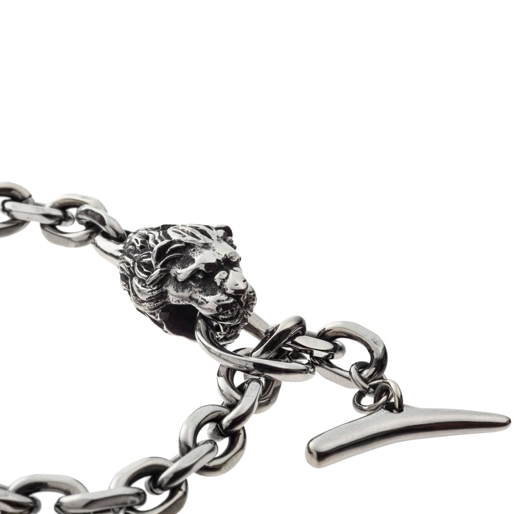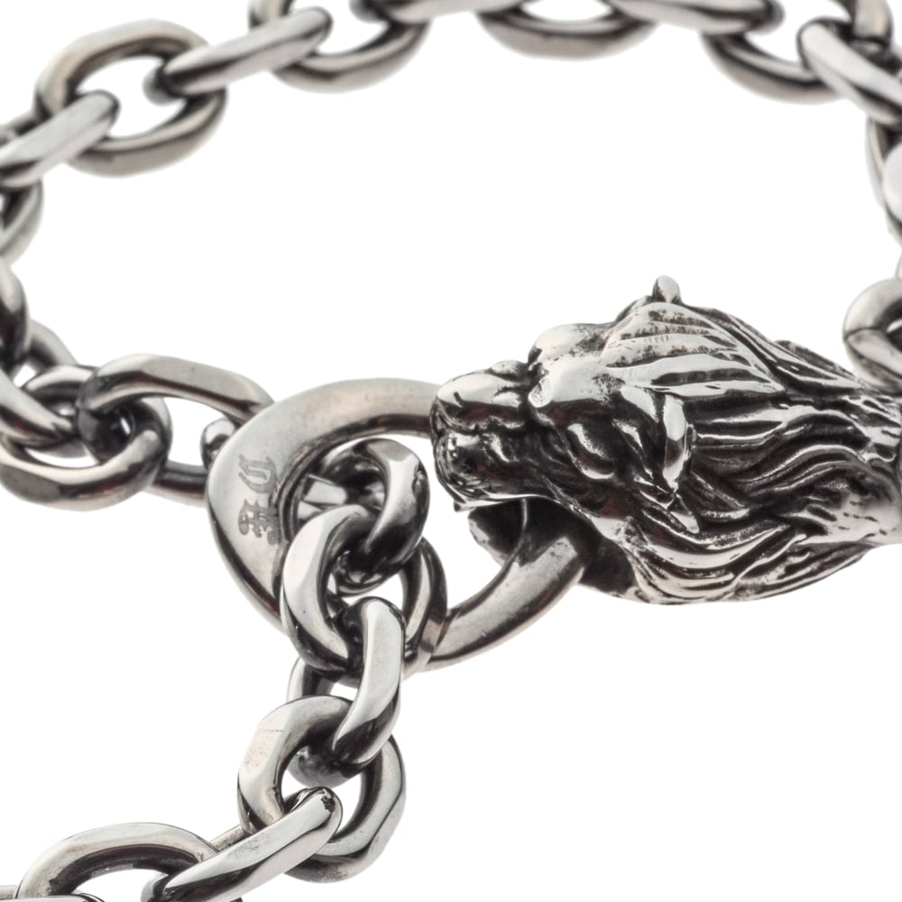4面カットのチェーンが鋭く輝き、精巧なライオンヘッドが力強い存在感を放ちます。