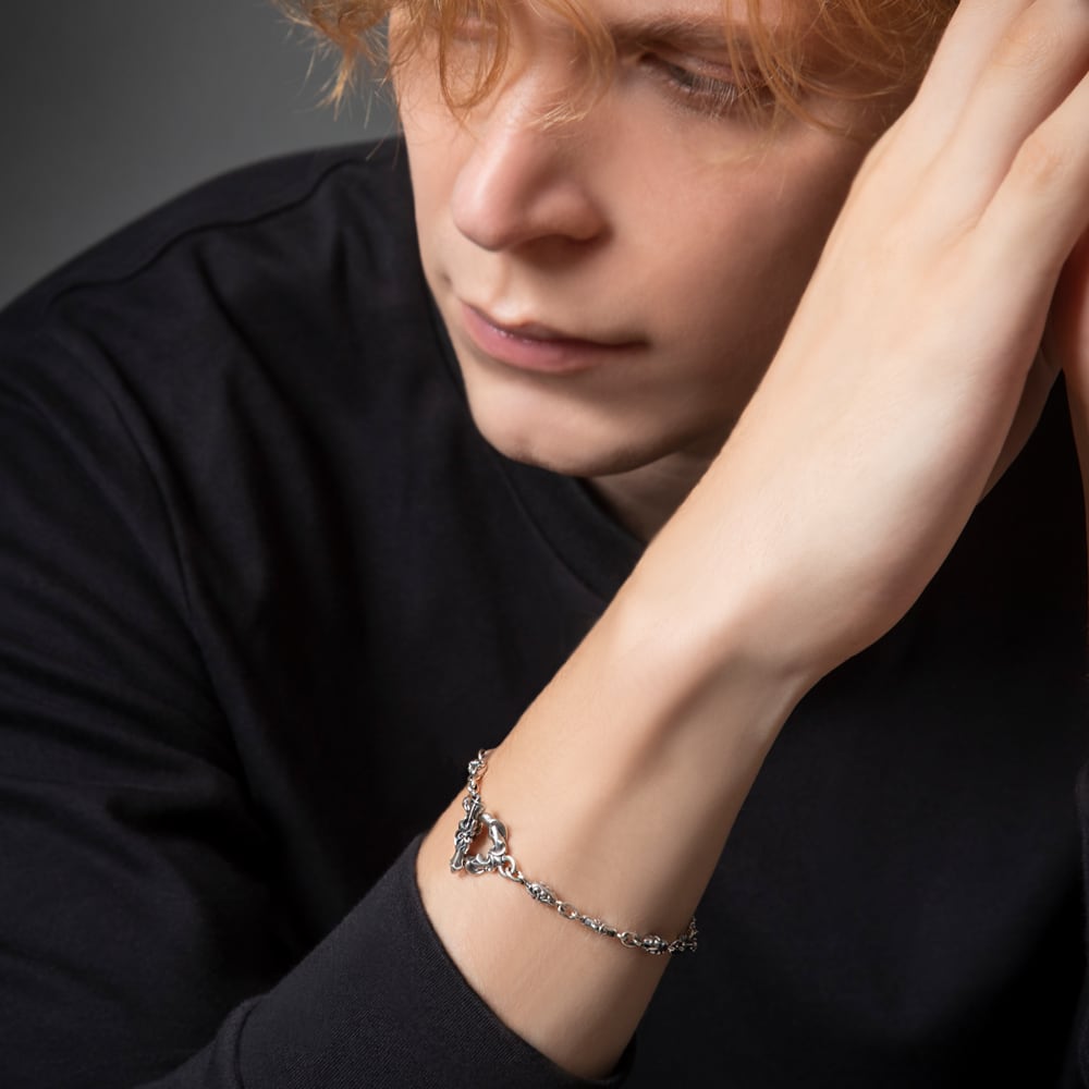 - ■フルール・ド・リスとトレサリーを交互に連ねた、SV925のチェーンブレスレット。