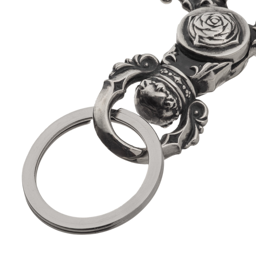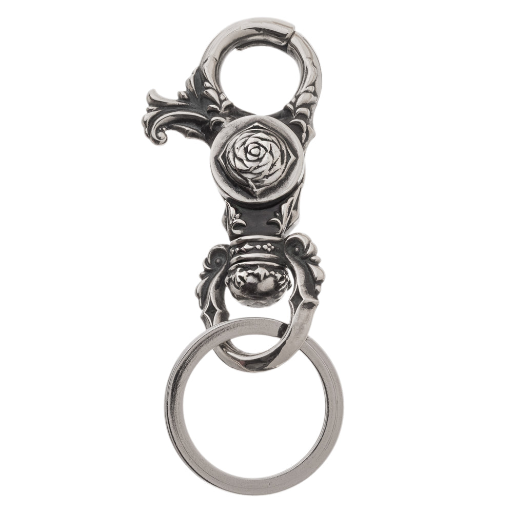 ■薔薇と唐草を繊細に彫り込んだ、重厚感あるキーホルダー。