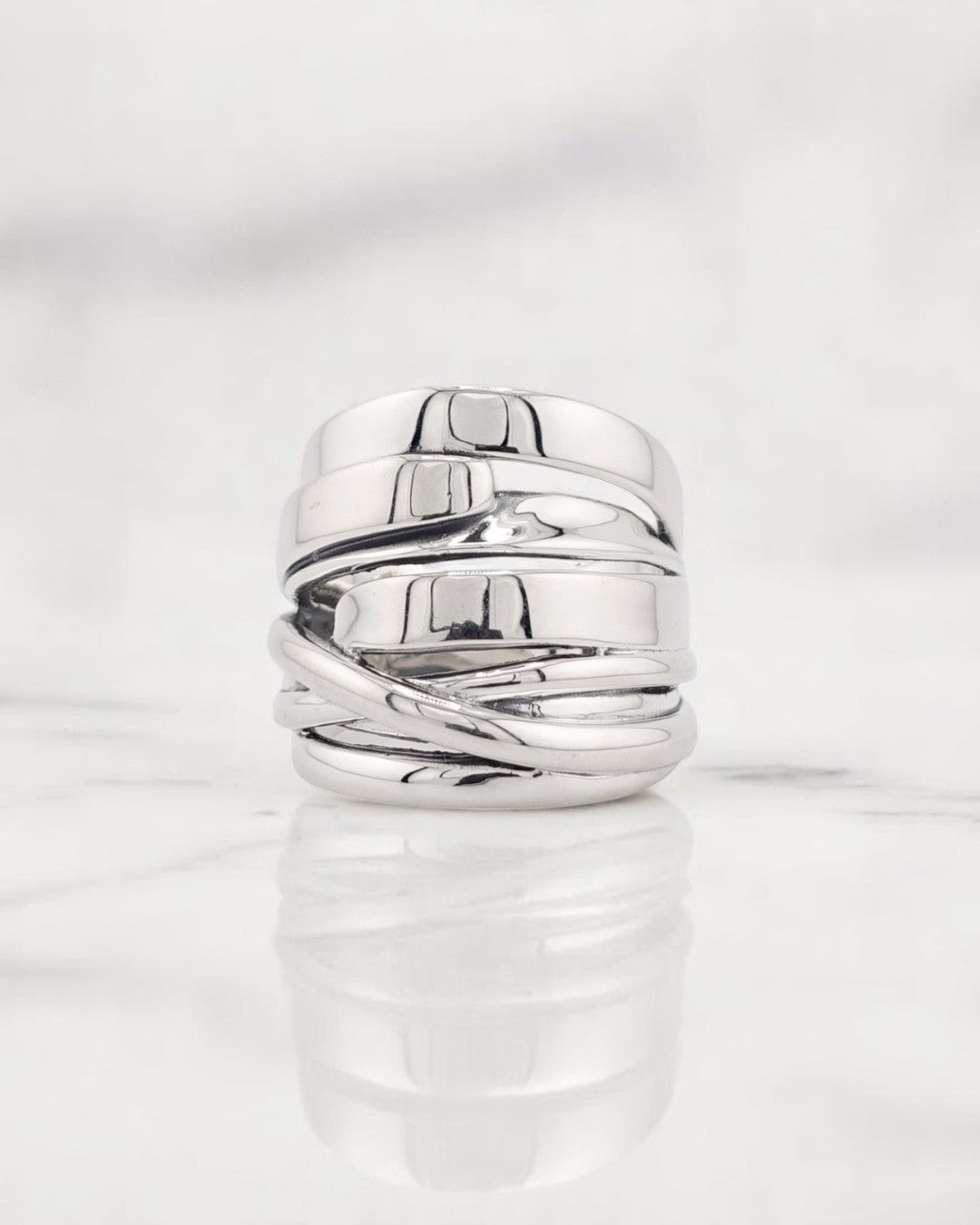 - “ruban(リボン)”の名の通り、柔らかな曲線と立体的なデザインが印象的なリング。 繊細さと存在感を兼ね備えた造形が、手元にエレガントなニュアンスを添えてくれます。 幅広で立体的なフォルムながら、指にフィットする心地よい着用感。 鏡面のように滑らかな光沢が、光の加減によってさまざまな表情を見せてくれます。 使い込むほどに味わいが増し、自分だけの“リボンの形”に育っていく──そんな変化も楽しめる一本です。 ジェンダーレスで、スタイリングの主役にもさりげないアクセントにも。