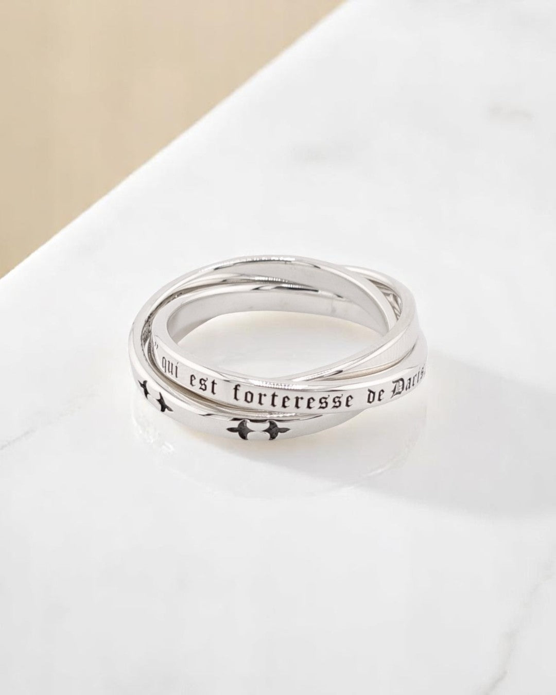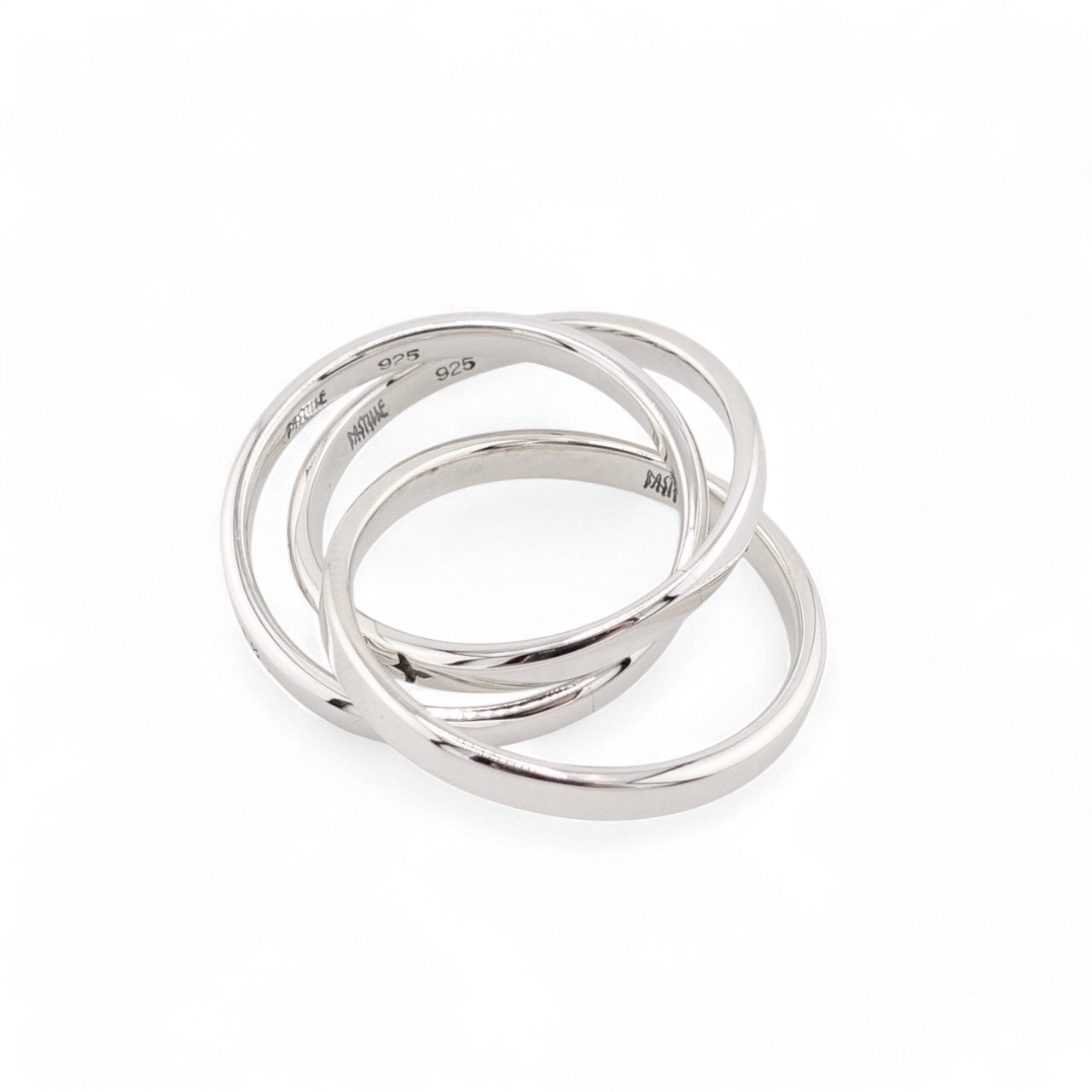 3本のリングが美しく交差し、ひとつの形を成すユニセックスデザイン。