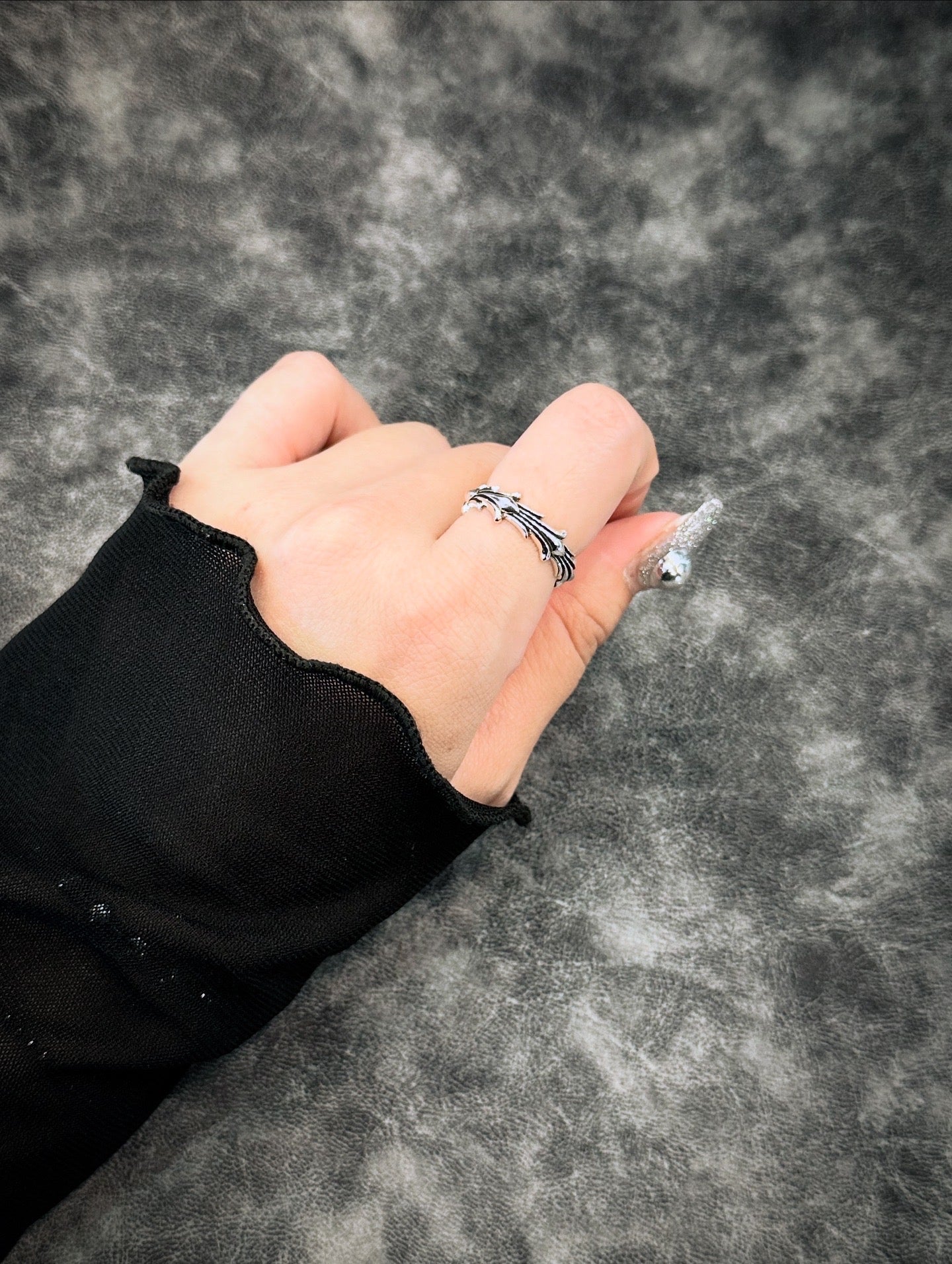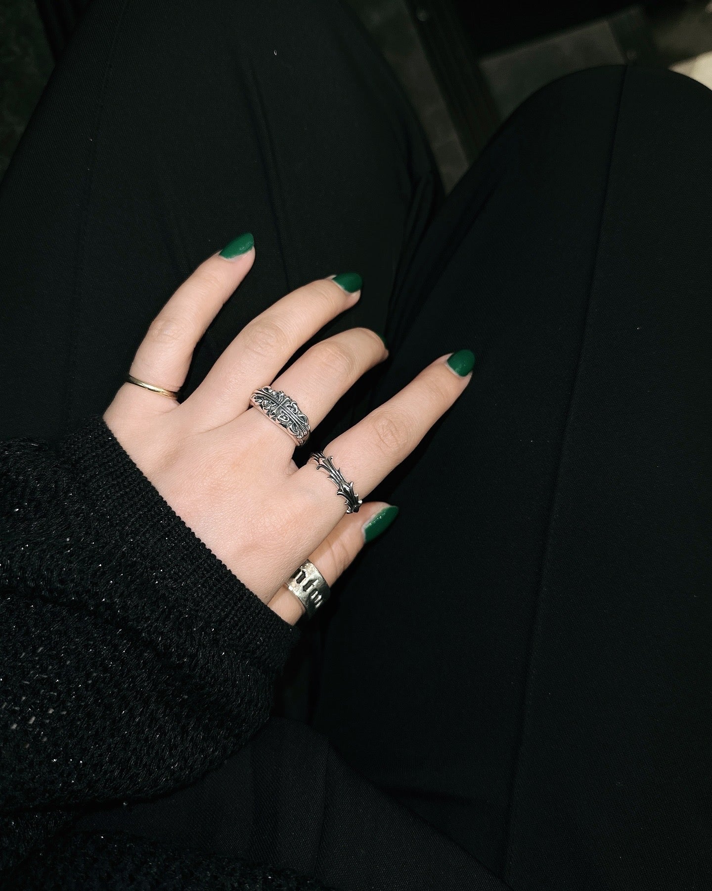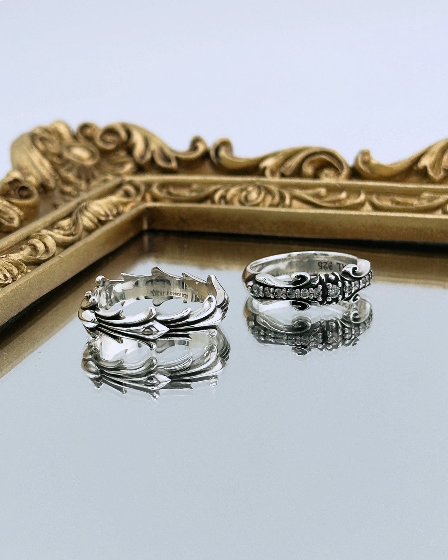 ■リリーのディテールを画一的に構築したリング。シャープに伸びるデザインラインと深く彫られたスリットが注目され、かなりながらも無骨さを醸しています。