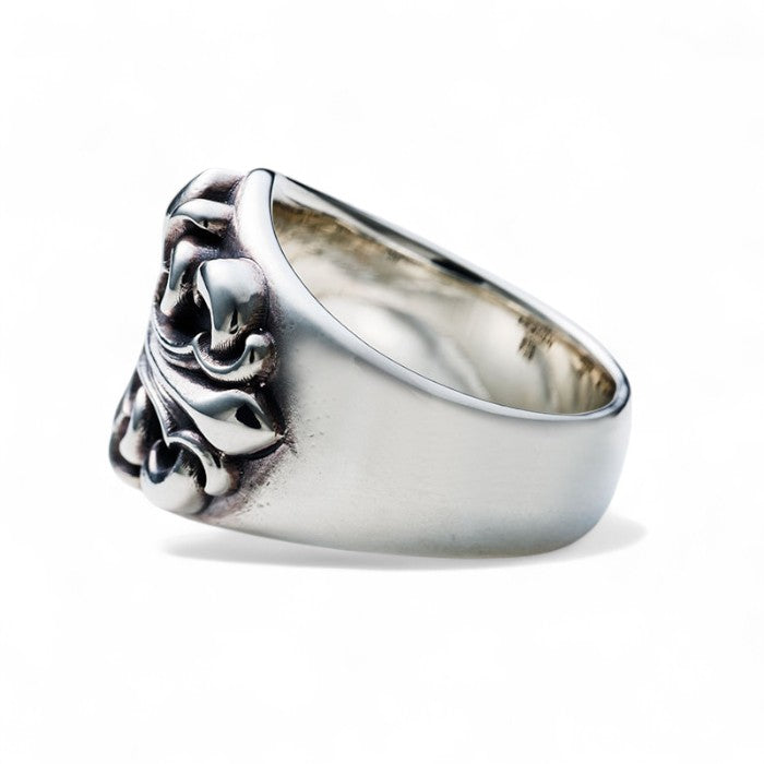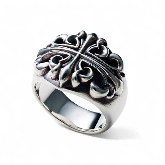 - ■荘厳なクロスが鎮座したリング。 咲き乱れるようなクロスの剣先と、裏抜きのない重厚感が無骨なイメージを企て、唯一無二のインパクトを与えてくれます。