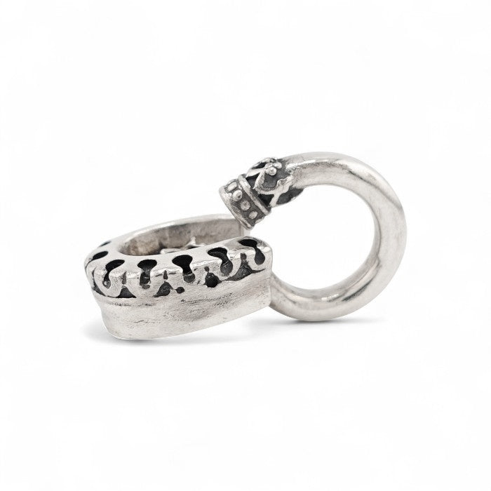 ■ゴッドサイズといえばホースシュークラウン。と言っても良い程の人気定番アイテム! 小ぶりながらも、ホースシューの中から不気味に覗き込んだスカルの顔がGODSIZEらしいロックを感じさせるアイテム。 ホースシューの11か所の穴には天然石をセットする事が可能。 上向きに開いている事から、幸運を呼び寄せそれを逃さない。とも言われている蹄鉄のモチーフはプレゼントにもおススメです。