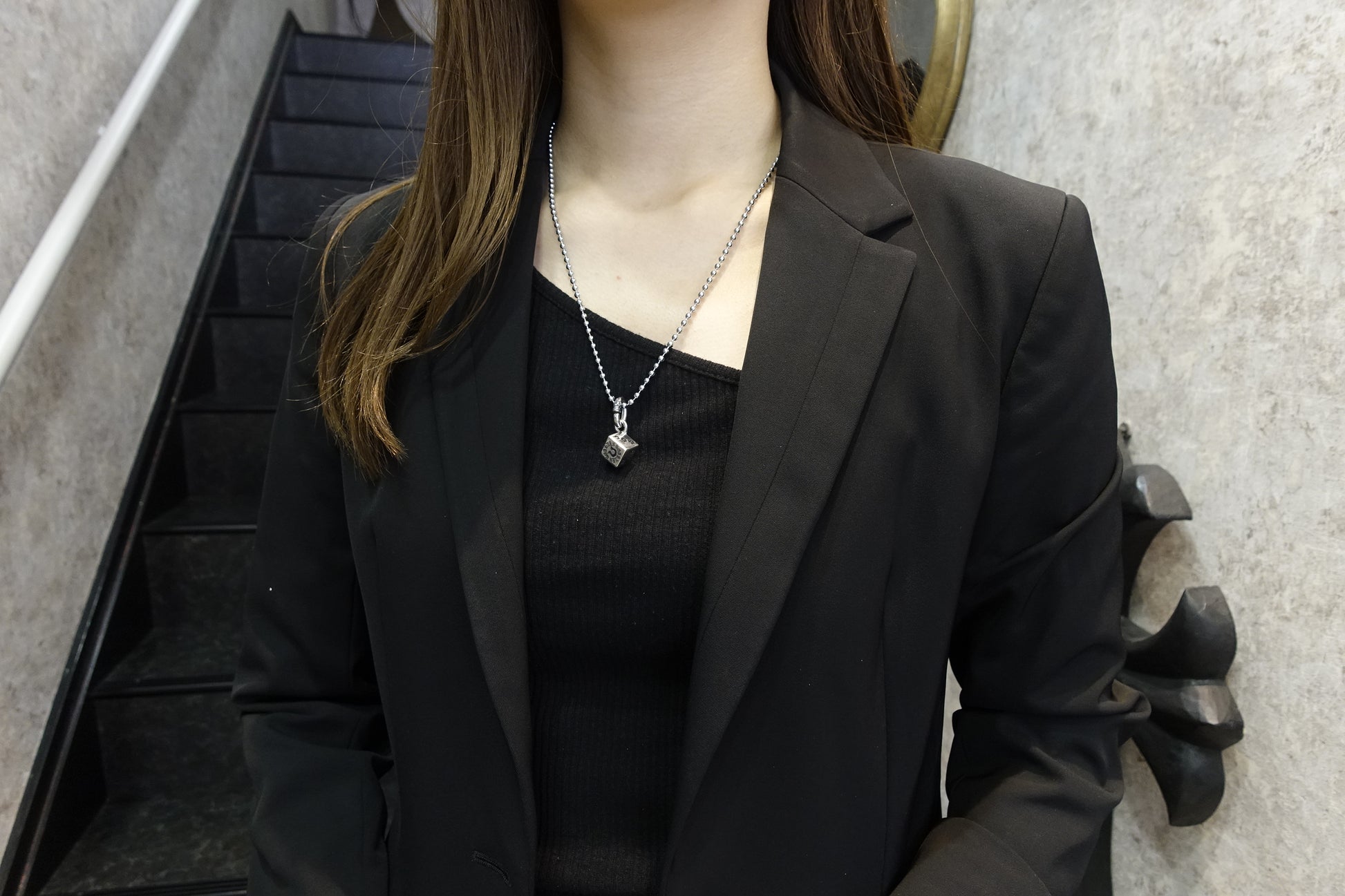 ■ゴッドサイズの人気ダイスペンダントのホースシュー。 賽の目が全てホースシューにデザインされている、ゴッドサイズらしい拘りの感じれるアイテム。 チェーンを通すと正面に1の目のホースシューが見え、首元でコロコロと転がるダイスはとても可愛いです。男女問わずお勧めのアイテム。