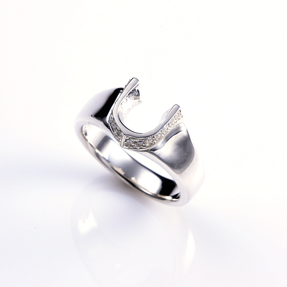■こちらは、幸運を呼び寄せるとされるホースシュー(馬の蹄)をモチーフにしたリングです。 「ハイ・ローラー」とは“大金を賭ける人”を意味し、ラスベガスでは彼ら専用のVIPルームが存在します。スラングでは“金にも女にも不自由しない色男”を指し、クレイジーでクールなその意味合いは、まさにキングリモのコンセプトを象徴しています。 美しいフォルムとバランスの取れたボリューム感は存在感があり、ペアリングとしてもご着用いただけます。 ホースシュー部分にはキュービックジルコニアをセッティングし、高級感あふれる仕上がりとなっています。