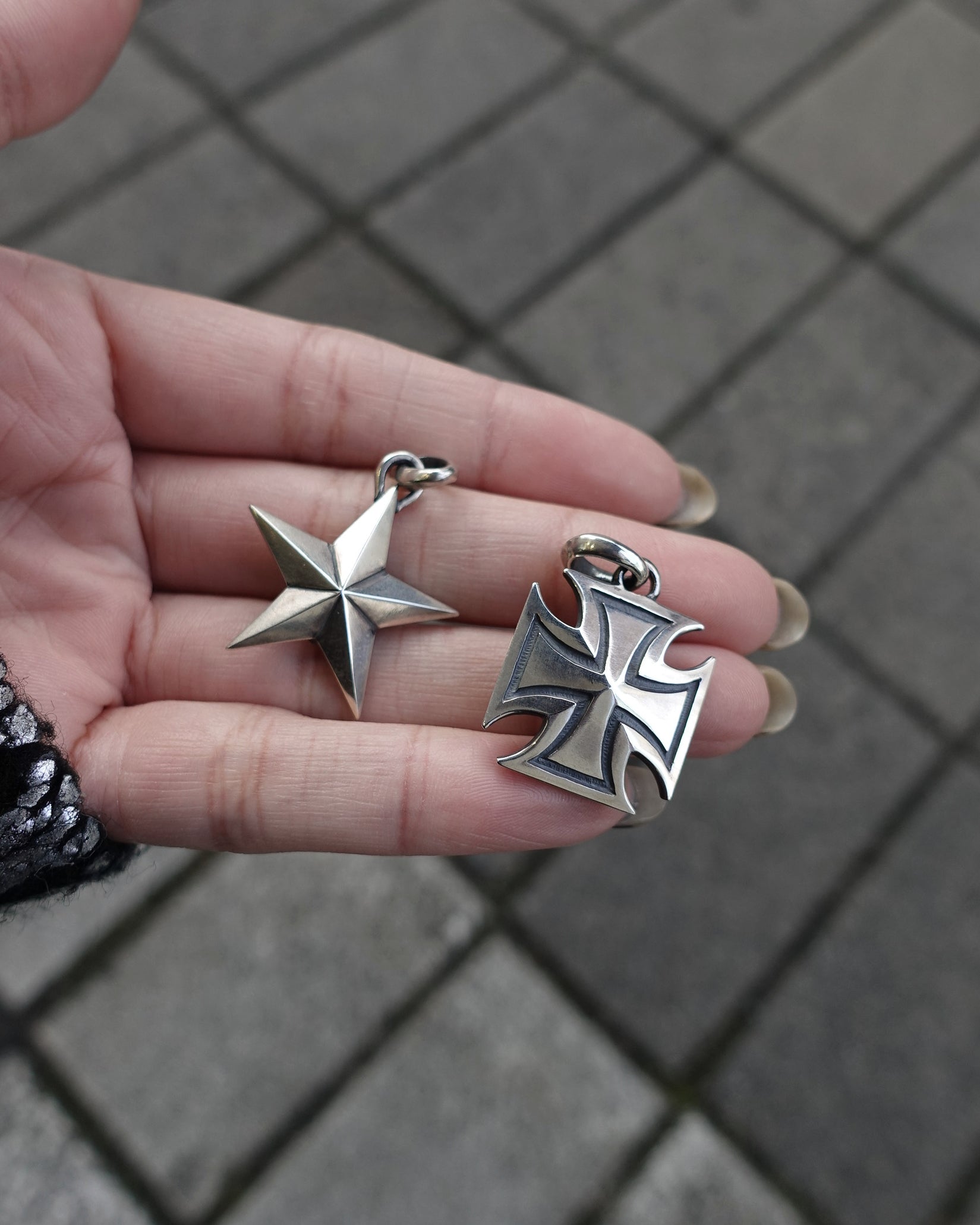 - ■程よいサイズのスターペンダント。 重ね付けとしてもおすすめ。 スターの裏にはスカルを配し、リバーシブルな着用も出来る。