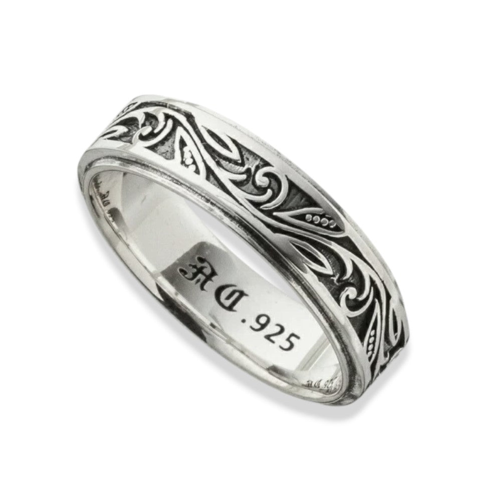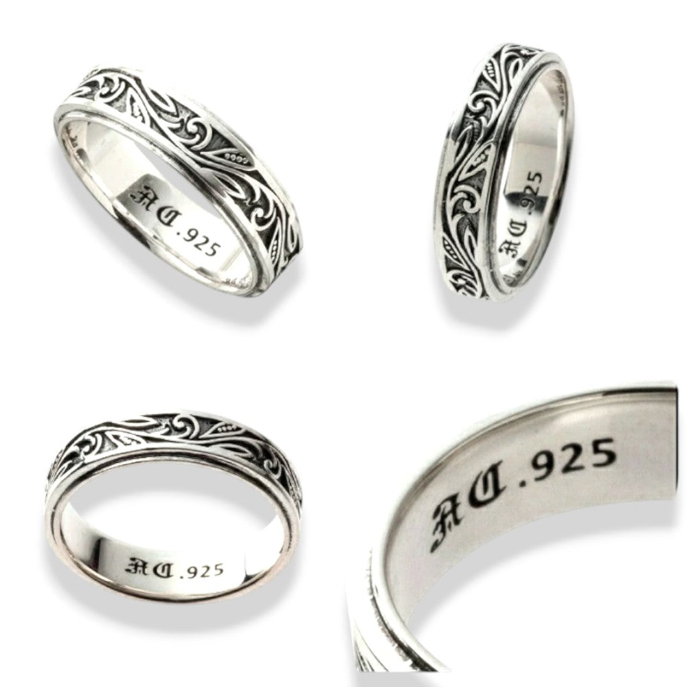 - ■トロピカルな唐草が繊細に彫りこまれたシルバーリング。