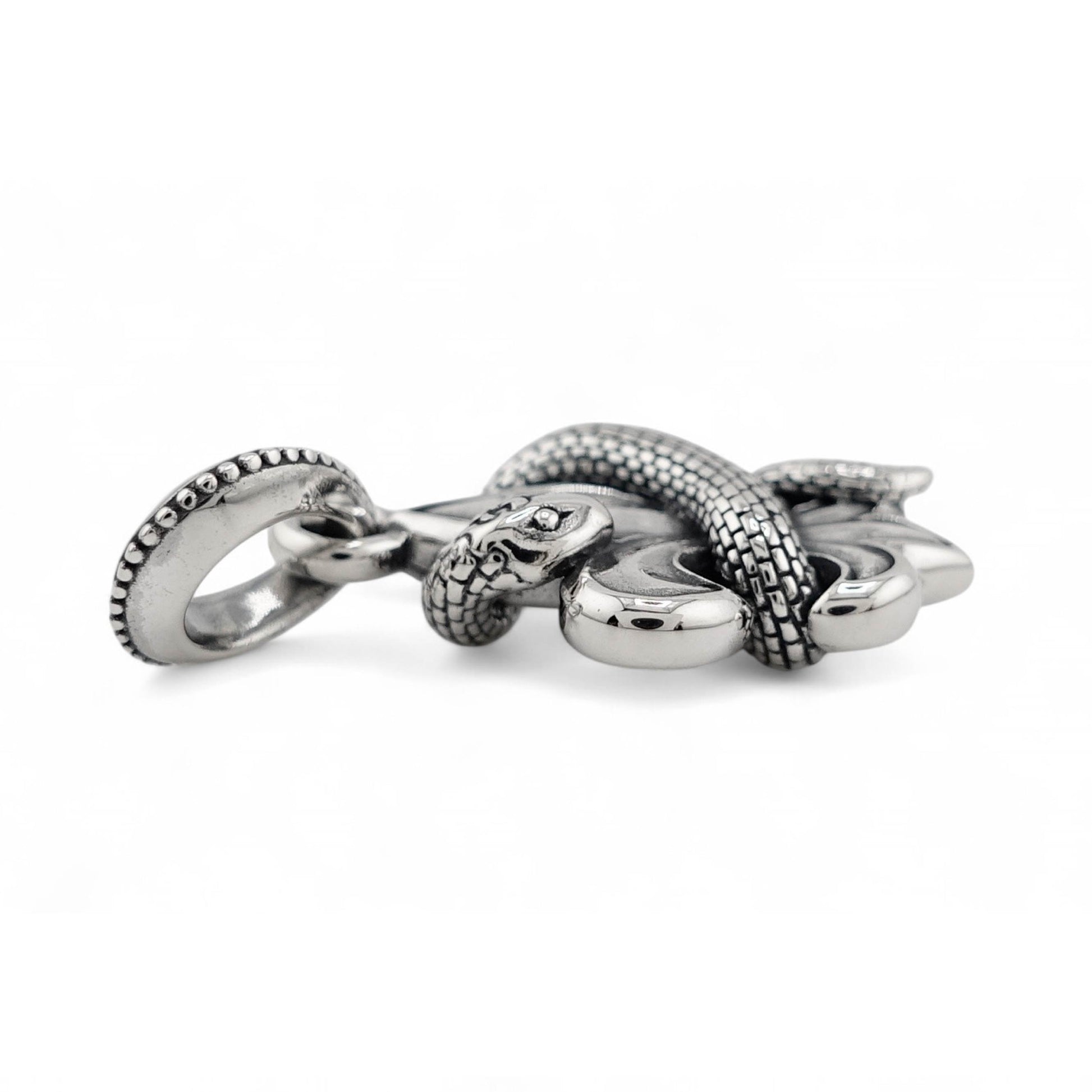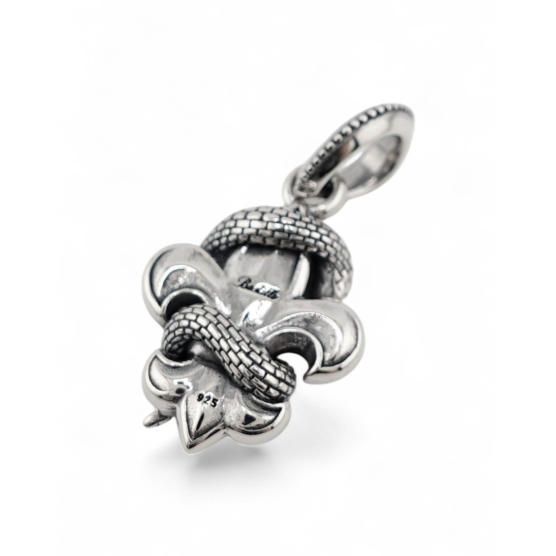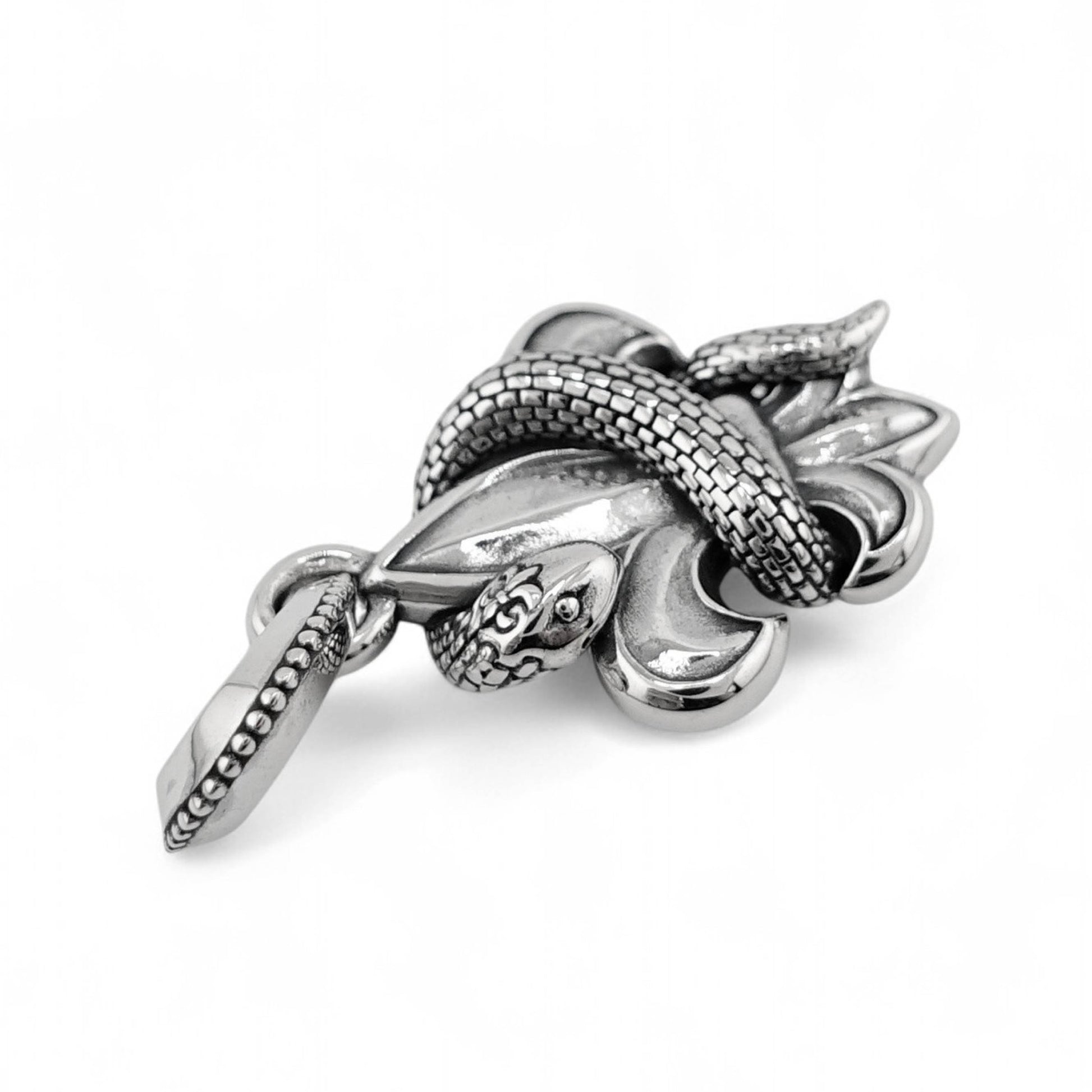 ■Néa(ネア) はフランス語の「新しく生まれた(née)」に由来し、再生・変容・目覚めを意味する名。 古来より“脱皮”を繰り返して成長する蛇は、「変化を恐れず、自らを再定義し続ける存在」の象徴です。 蛇がしなやかにユリの花を包み込むように絡みつき、力強くも静かな守護の存在感を放ちます。 その頭部には、リングと共通するユリの刻印を添え、全体のフォルムは繊細ながらも重厚なつくりで、鱗一枚一枚の立体感と滑らかな曲線が印象的。 小ぶりながらも確かな存在感を放ち、日常にも特別な日にも寄り添います。