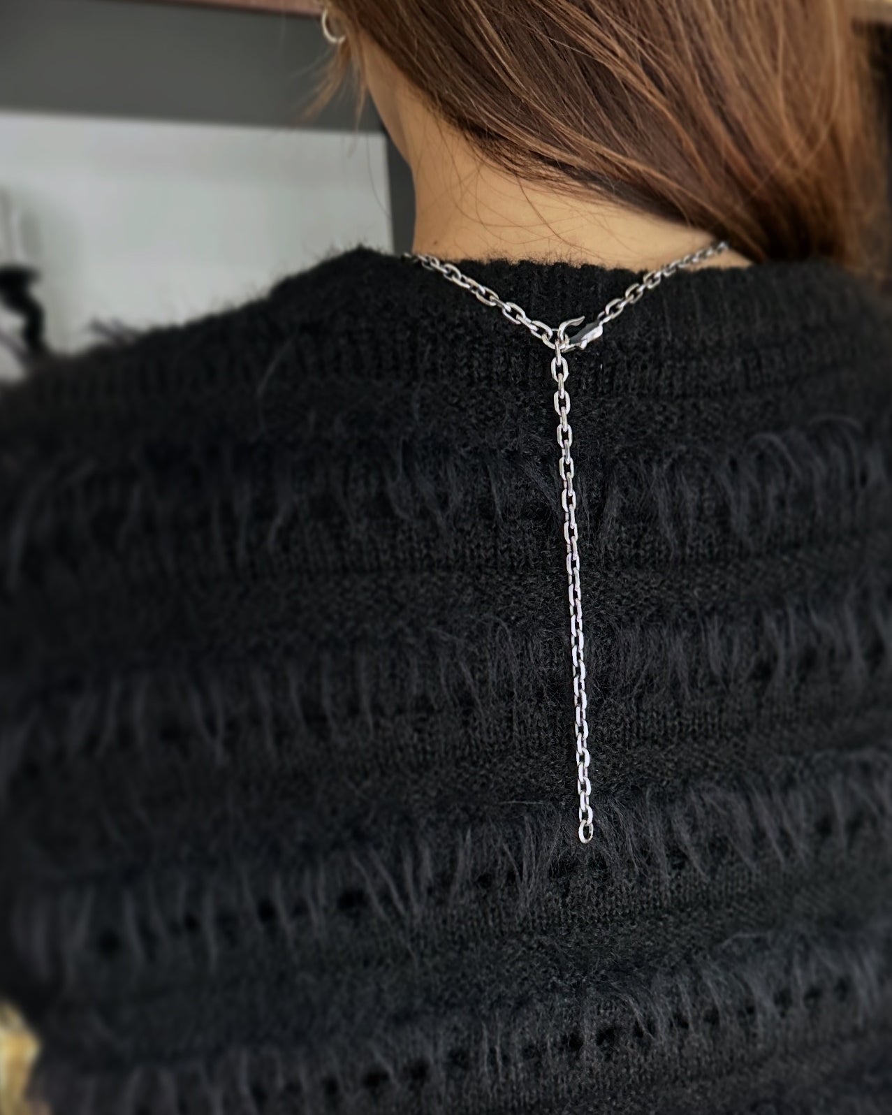 全長60cmのチェーンは、途中のリングを使用することで45cmとしても着用可能。
