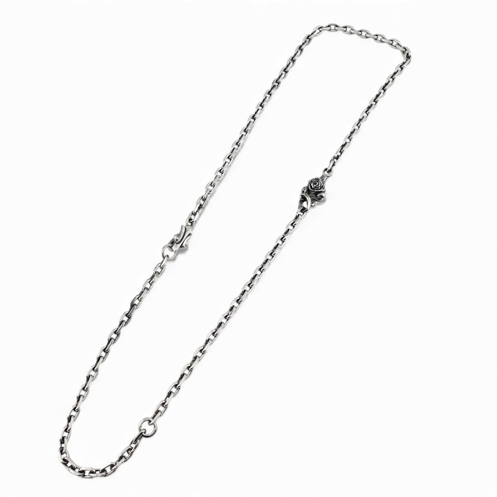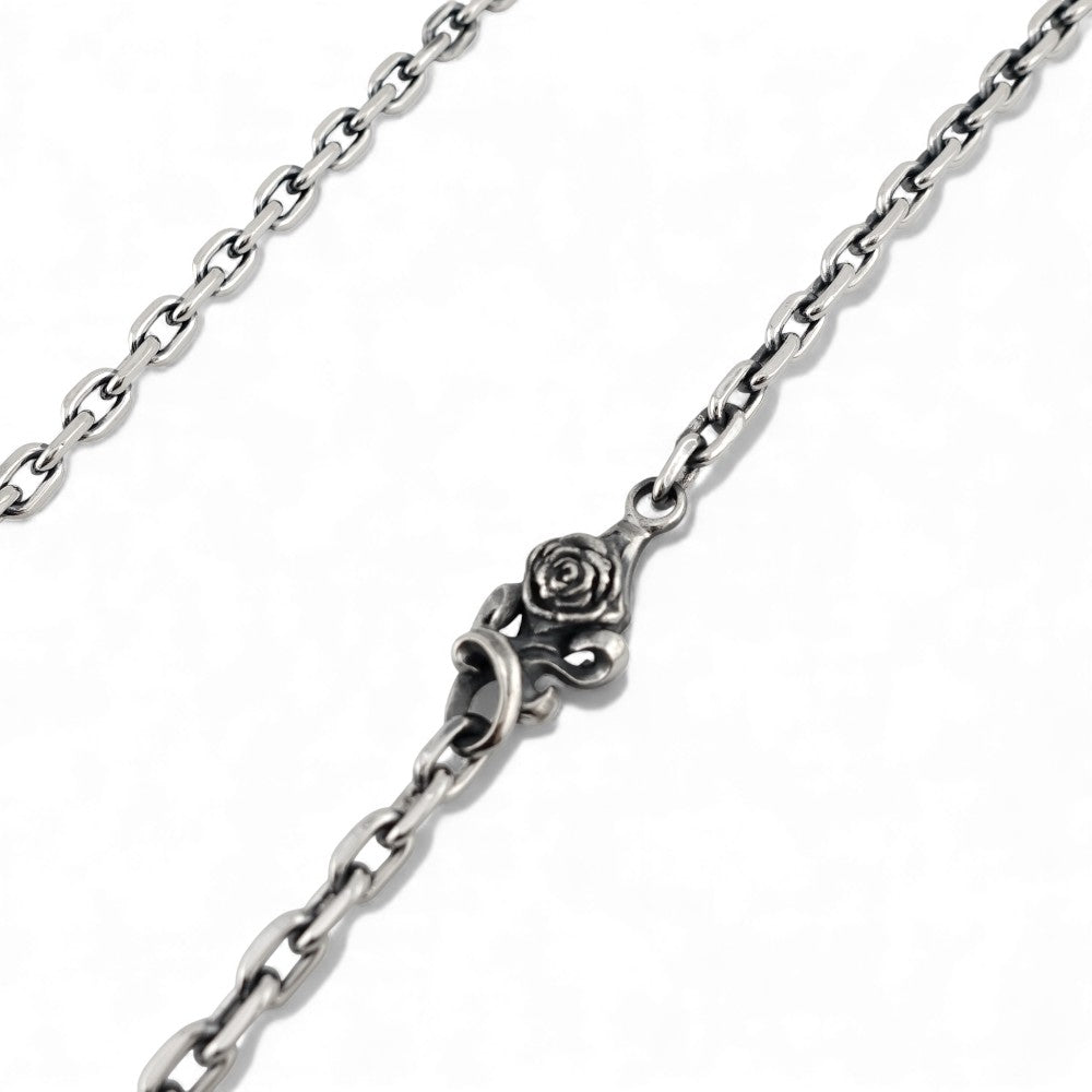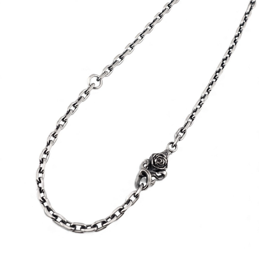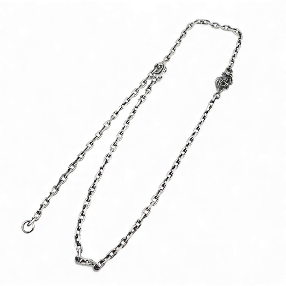 立体的に彫り込まれたローズモチーフがアクセントとなり、チェーン単体でも十分に存在感を放つ仕上がりです。